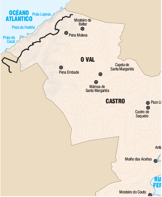 Na paisaxe alternan cantís e praias que atravesan os concellos de Ferrol, Narón e Valdoviño.